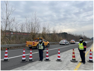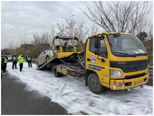 演練模擬成萬(wàn)方向K110+500處因冰雪天氣影響,路面出現(xiàn)積雪結(jié)冰,導(dǎo)致車輛行駛中打滑側(cè)溜迫停,造成交通路塞。參演單位按照演練方案快速集結(jié),迅速組織人員裝備,趕赴事發(fā)地點(diǎn),有序?qū)嵤┙煌ü苤疲O(shè)置交安設(shè)施,實(shí)施緊急救援,清理路面障礙,疏散滯留車輛,消除安全隱患,恢復(fù)車輛通行。